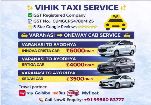Varanasi to Ayodhya Taxi Service, Varanasi to Ayodhya Cabs, Fare Starts @Rs. 9/km